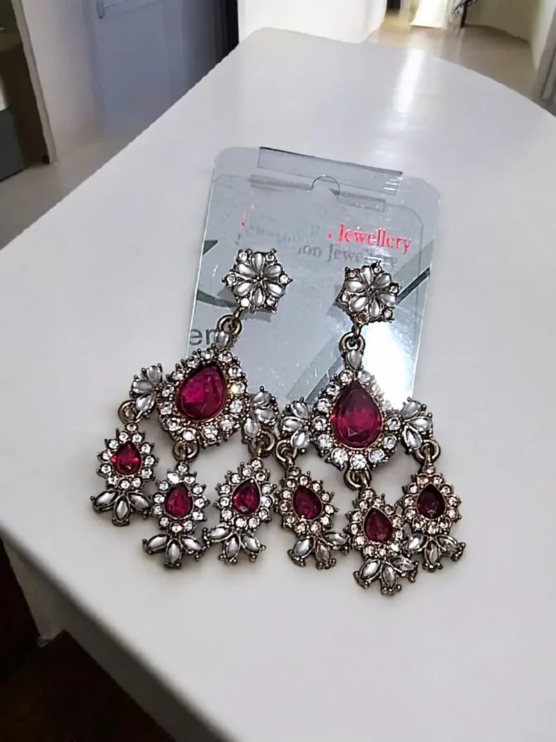 Dripping in royal elegance, these Gulnaar Kundan Earrings are a mesmerizing blend of deep hot pink stones and delicate pearls, framed in intricate kundan work. Their floral motifs and grand design exude vintage charm, making them the perfect statement piece for weddings, festive occasions, and traditional attire.