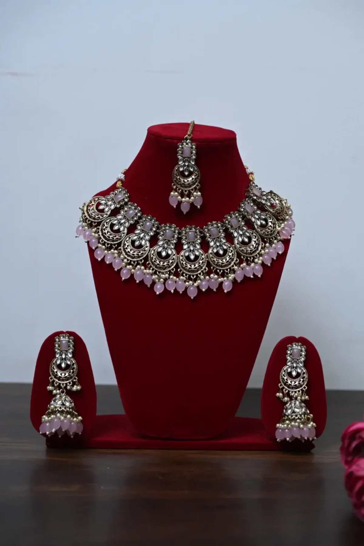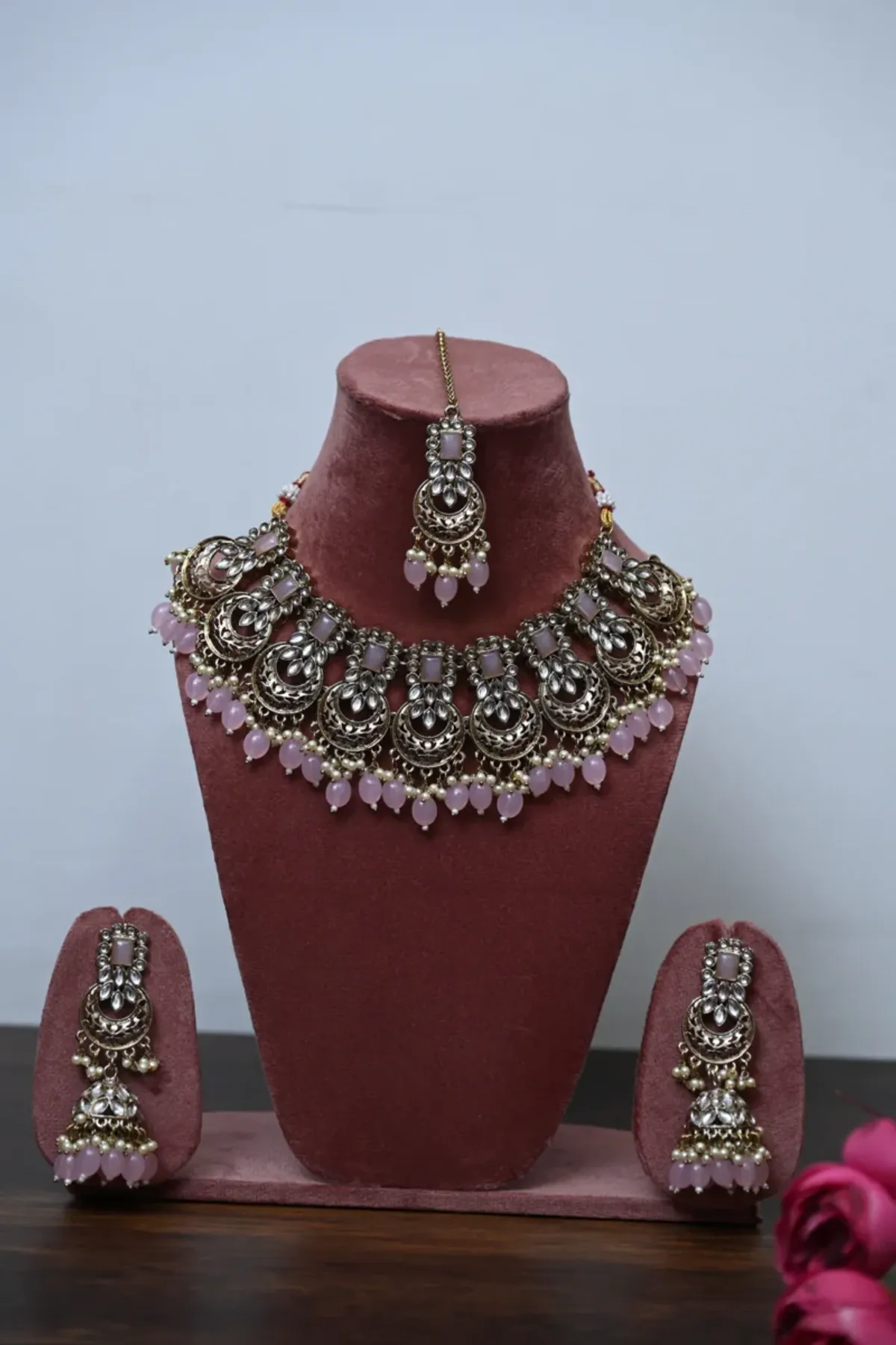 | Product Name | Baby Pink Gulabi Chand Chandelier Necklace Set |