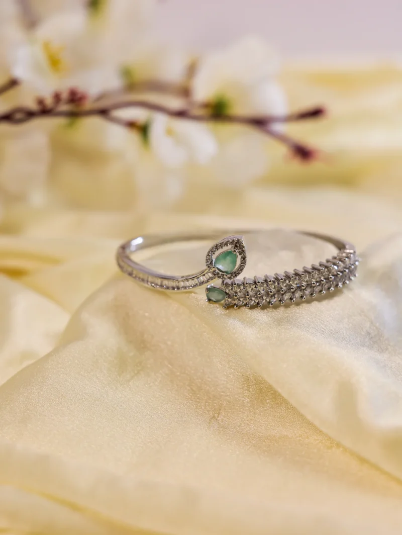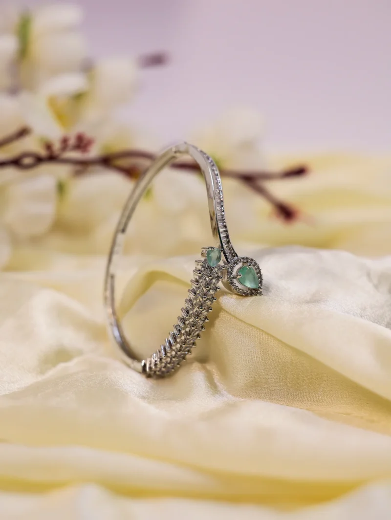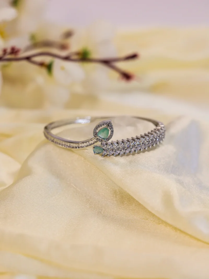Delicate yet captivating, this bracelet carries an air of mystery and grace. Its intricate details and shimmering stones create a mesmerizing effect, perfect for those who adore subtle sophistication. Whether for a special evening or an everyday touch of magic, “Enchanted Whisper Mint Green” makes a statement without saying a word.