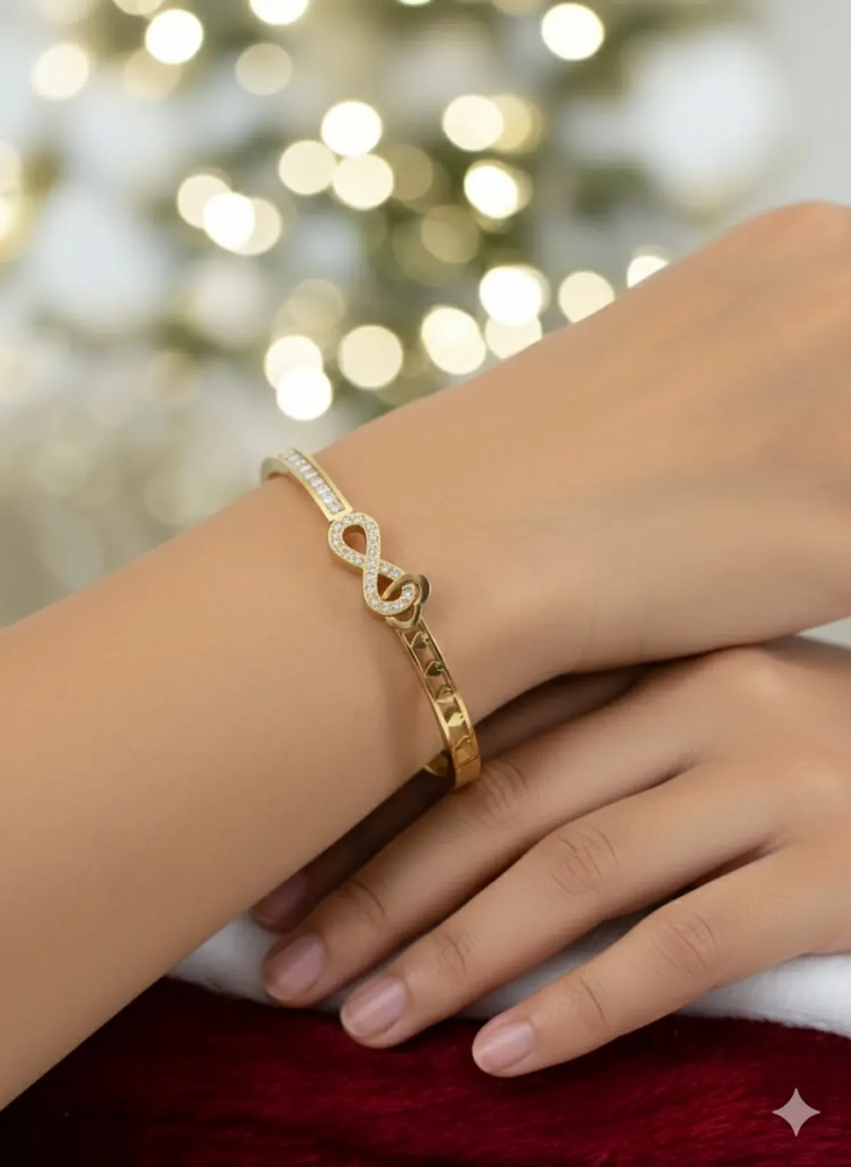 The radiant gold finish enhances its refined appearance, while the crystal detailing adds subtle brilliance. The infinity symbol represents eternity, strength, and everlasting beauty, making this bracelet both stylish and meaningful.
