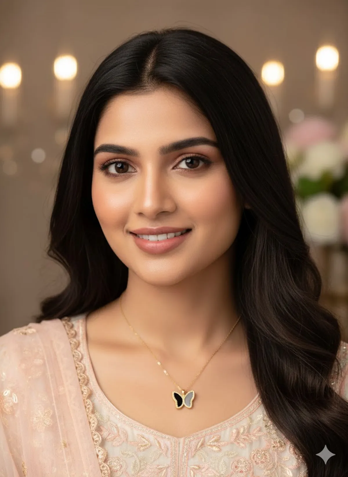 Crafted from high-quality stainless steel and finished with premium gold plating, this necklace offers exceptional durability, shine, and resistance to tarnishing. The delicate butterfly design with black accent detailing enhances its luxurious and stylish appearance.