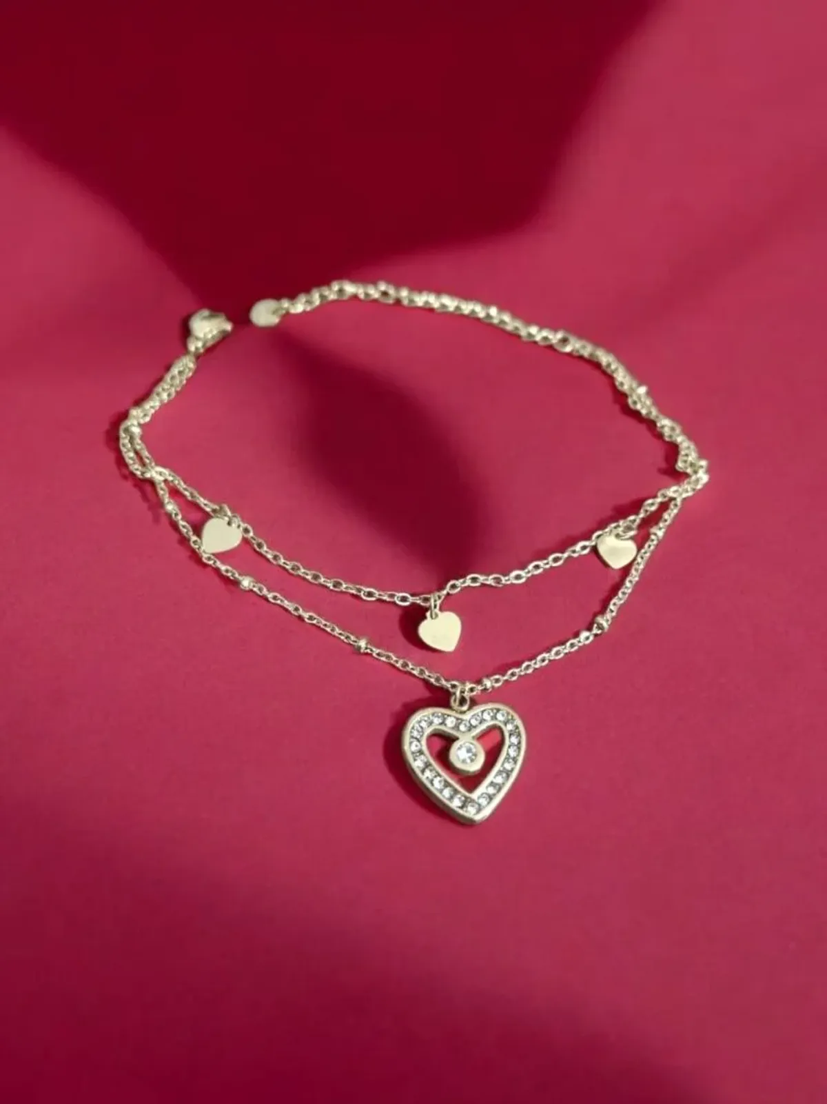 | Design | Double-layer chain bracelet with crystal heart pendant |