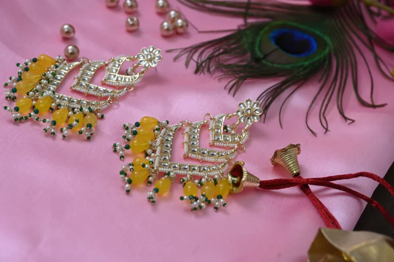 Bright and graceful, these yellow pearl danglers bring warmth and radiance to any outfit. Their delicate yet bold design makes them a statement piece for both traditional and modern attire. Pair them with a floral saree or a breezy kurta for a fresh and vibrant look.