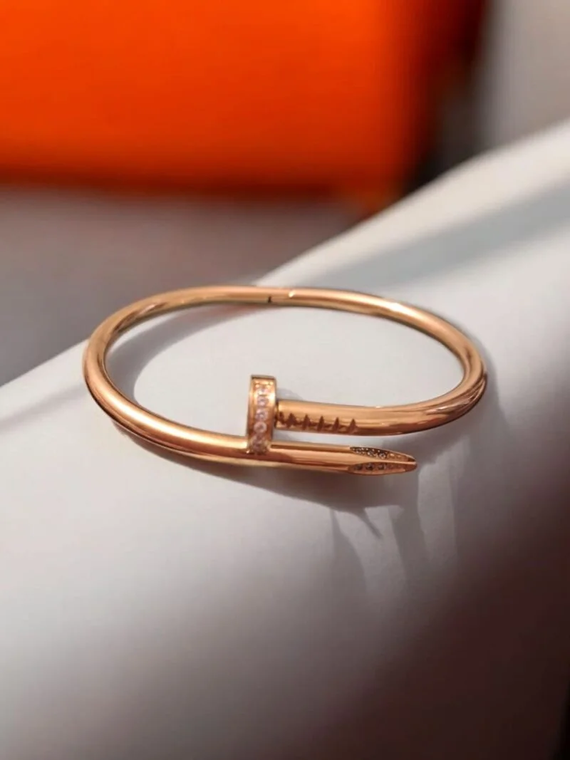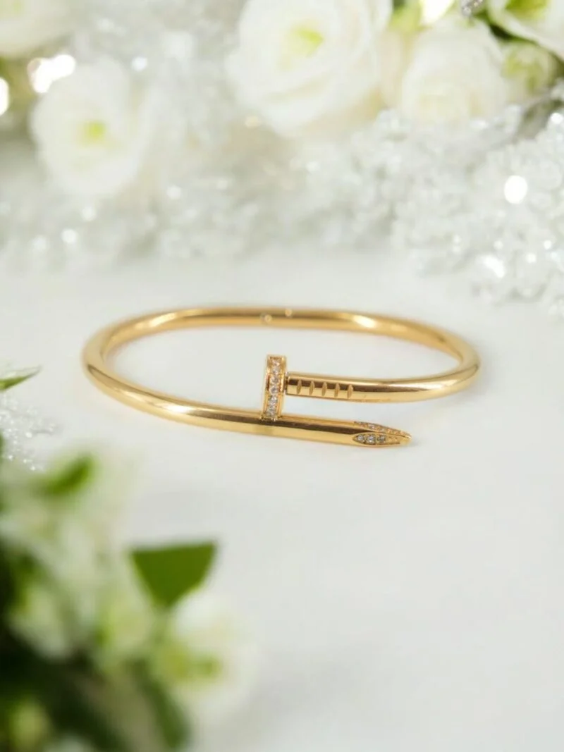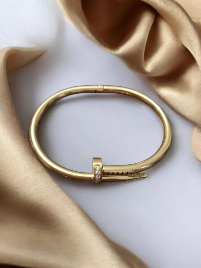 Sleek and striking, our Nail It Bracelet features a contemporary nail-inspired silhouette in a smooth anti-tarnish gold finish. Subtle crystal embellishments add just the right amount of sparkle, making it the perfect blend of edge and elegance. A statement piece for modern minimalists. ✅ Anti-Tarnish Golden Shine