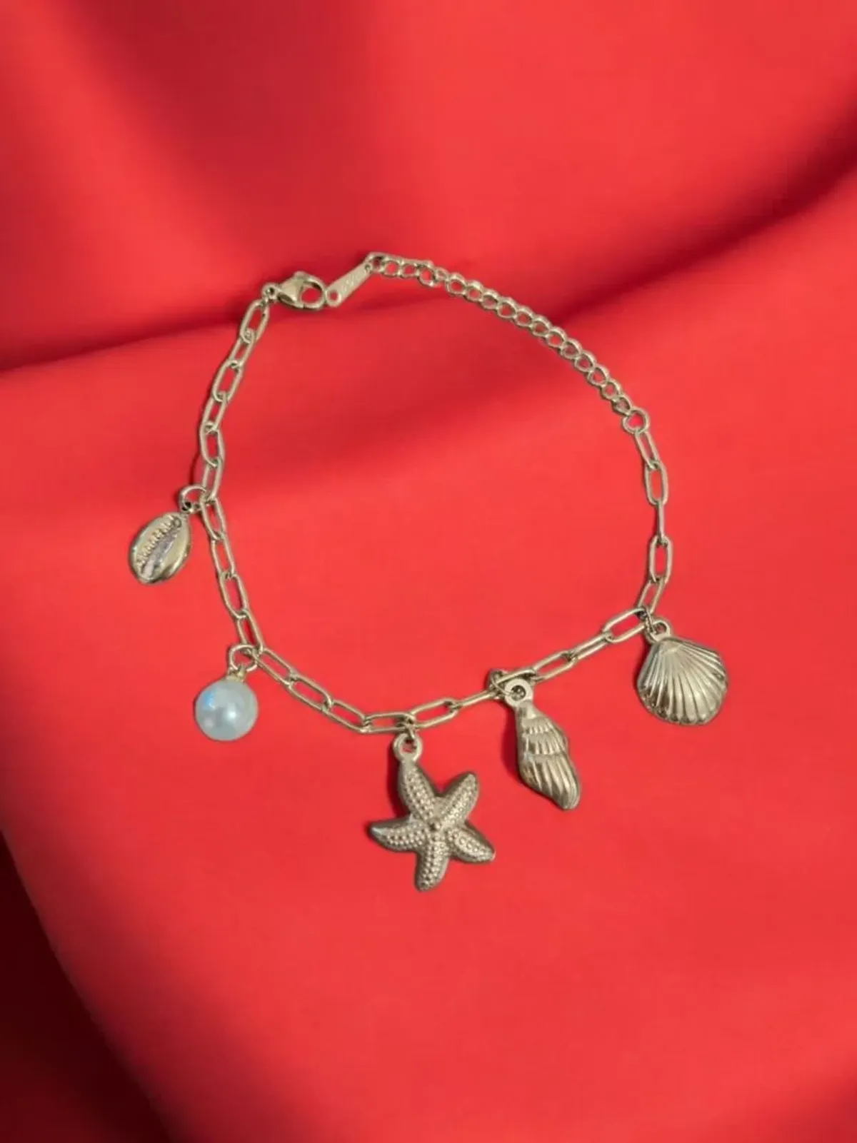 | Design | Elegant gold-tone chain bracelet with starfish, shell, and pearl charm accents |