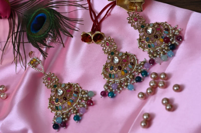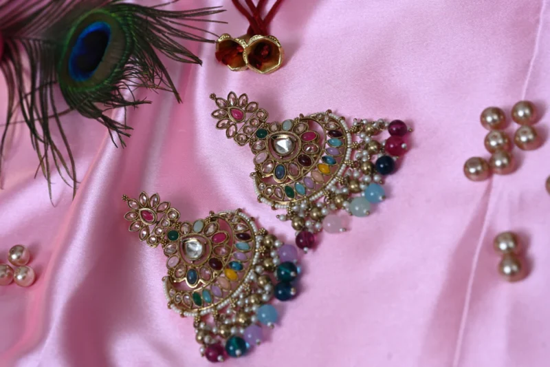 A garden of colors in the form of chandbalis, adding vibrancy to every festive occasion. Best styled with colorful lehengas and minimalistic makeup to let the earrings shine.