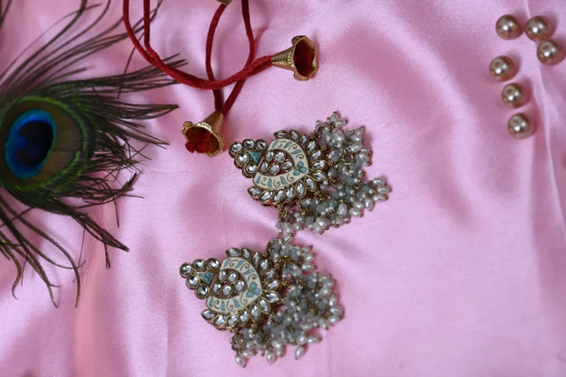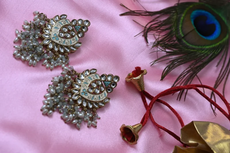 Elegant yet effortlessly charming, the Shakti Glow Ivory Blue Danglers are a tribute to grace and strength. Featuring delicate pearls that sway with every movement, these earrings capture the essence of timeless beauty. Whether it’s a festive celebration or a casual gathering, these danglers will add an ethereal glow to your look.