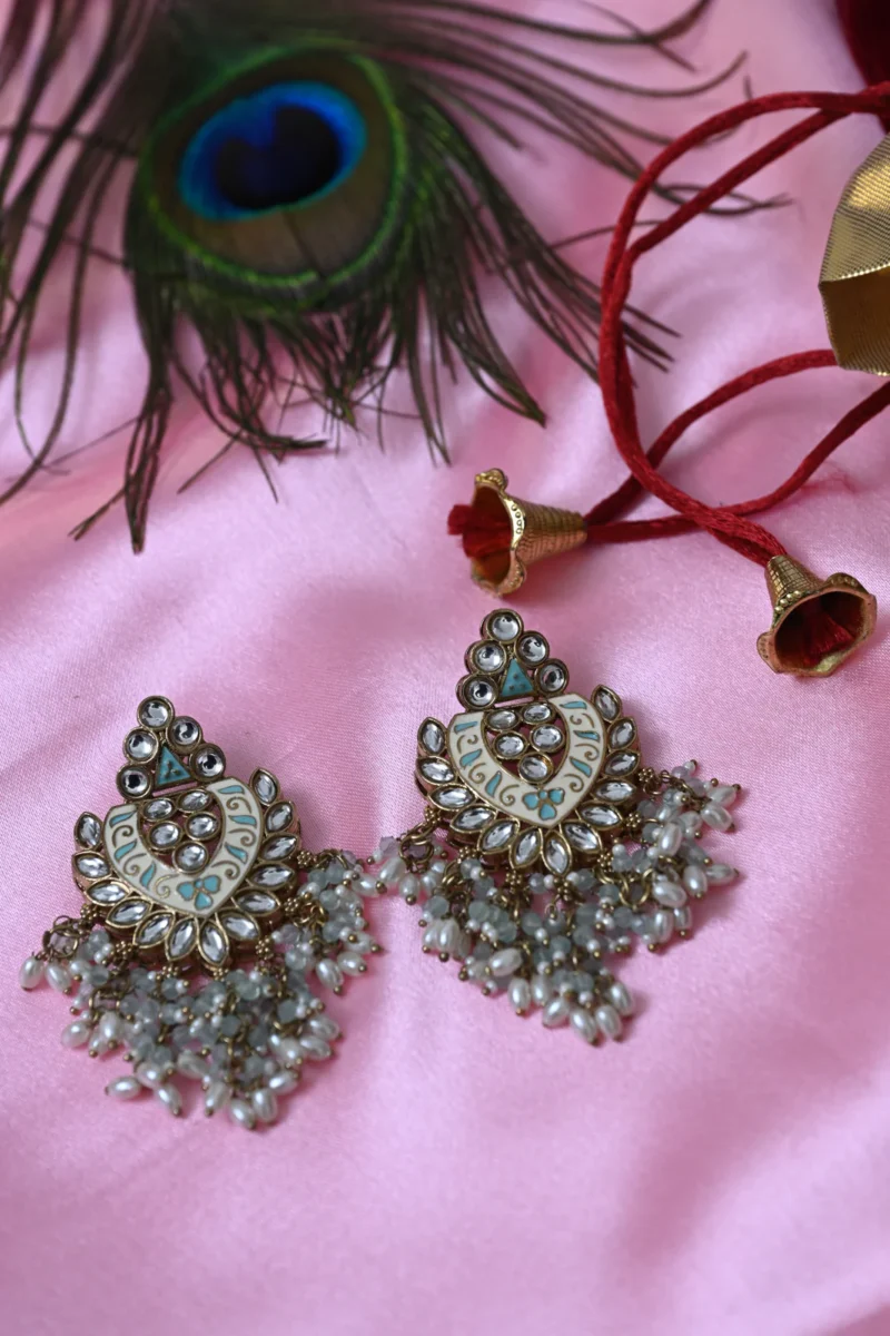 Shakti Glow Ivory Blue Danglers – Artificial Ear Rings