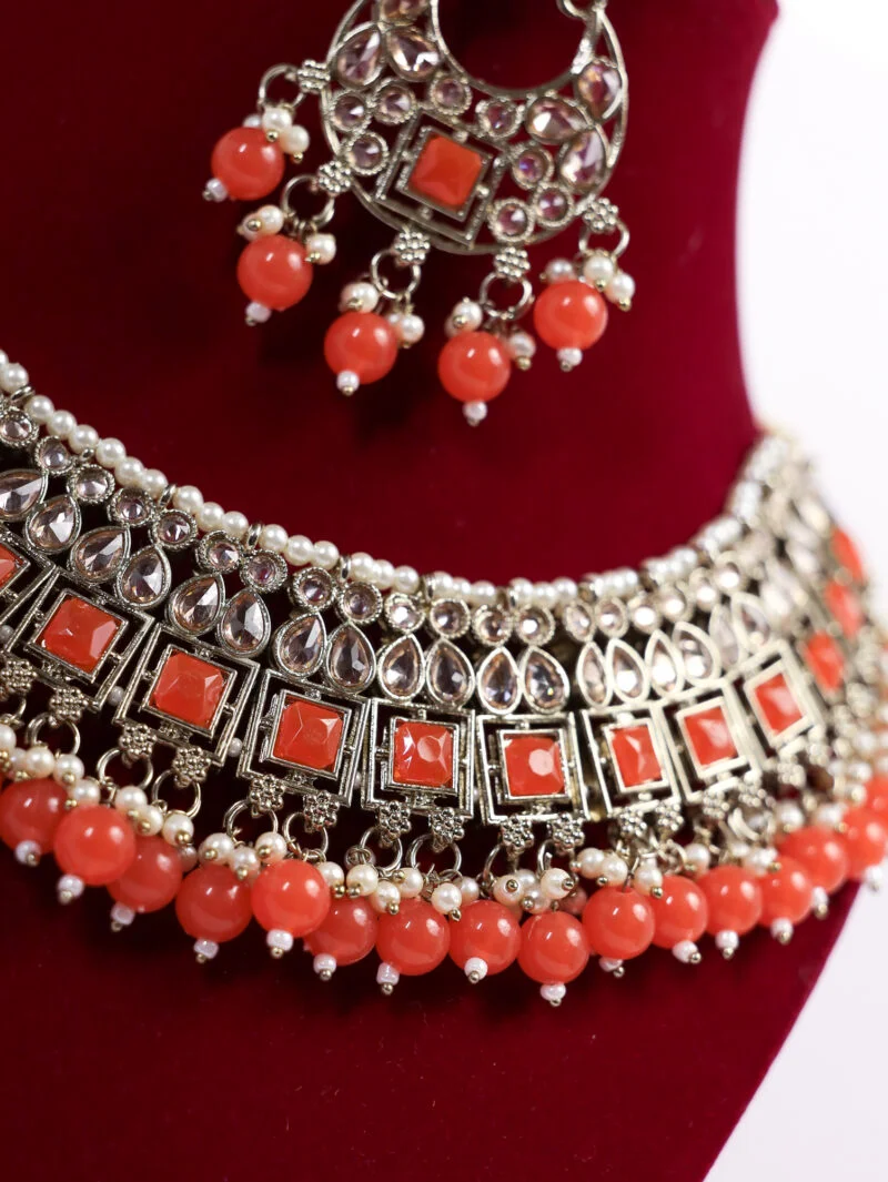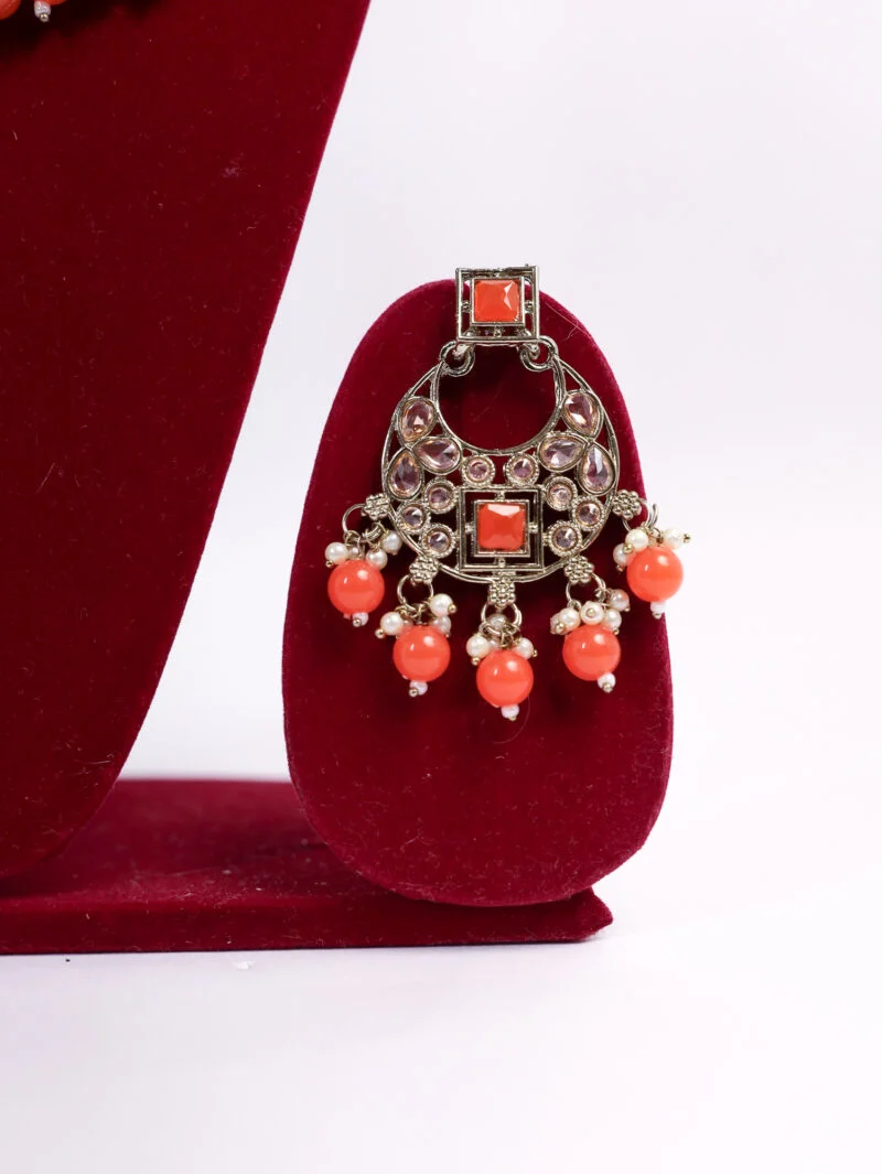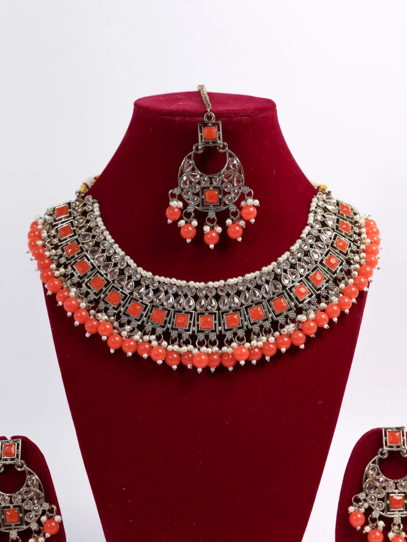 Infused with the warmth of the sun, this orange pearl necklace adds a pop of color and vibrancy to any look. Great for haldi functions or summer parties, it brings a sunshine-inspired charm when paired with yellow or orange attire.