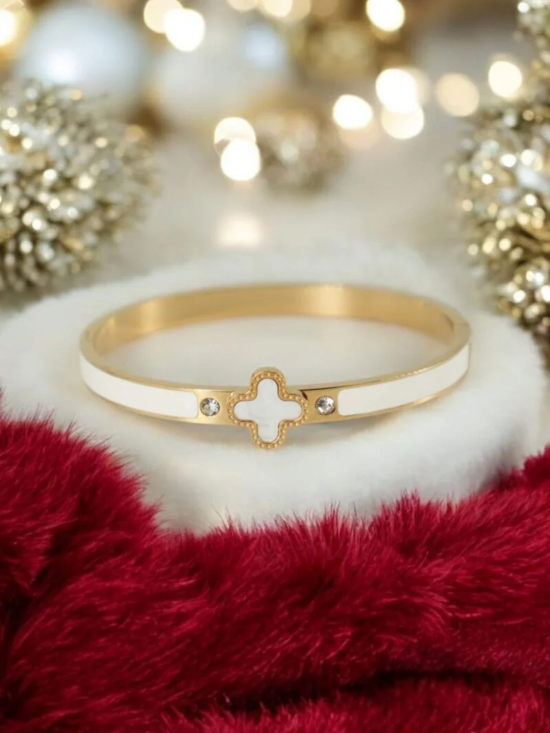 White Enamel Clover Bracelet – Anti-Tarnish Golden Touch